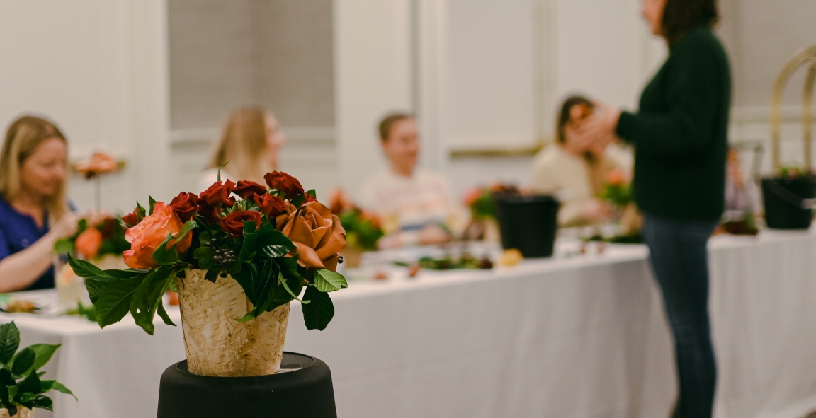 Last night we kicked off our Bellevue Collective Holiday Maker’s Series with a fall centerpiece flower arranging workshop with Young Designs! Hattie and Sarah are a sister duo, passionate about making life more beautiful. Their story began at the ages of 7 and 5 when they spent summers cutting and arranging flowers on our family farm located in Little Compton, Rhode Island. In 2016, the pair decided to turn their passion into their livelihood and established Young Designs. The sisters are proud to be 3rd generation floral designers, and lead the class beautifully!